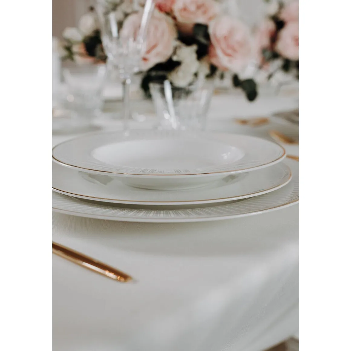 Kredenzen Sie Ihre Pasta mit dem Pastateller Château Septfontaines von und verwöhnen Sie ihre Gäste mit anmutiger Eleganz. Das raffinierte Relief und die 20 Karat Goldkontur schmeicheln Ihren köstlichen Kreationen und setzen sie mit einem bezaubernden Ausdruck in Szene. Ihre Gäste werden von dieser modernen Interpretation des Art déco begeistert sein.