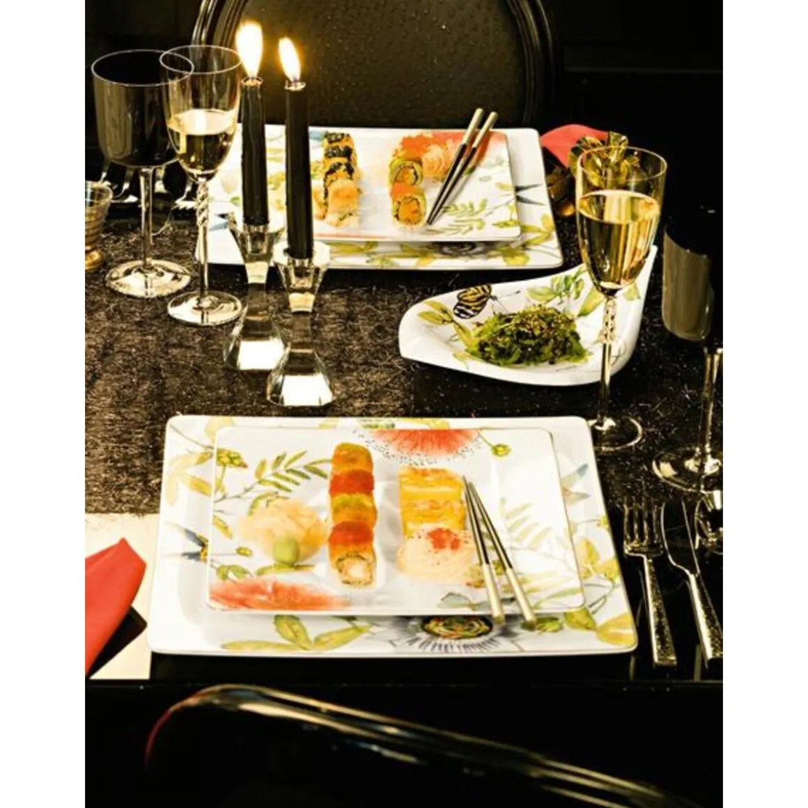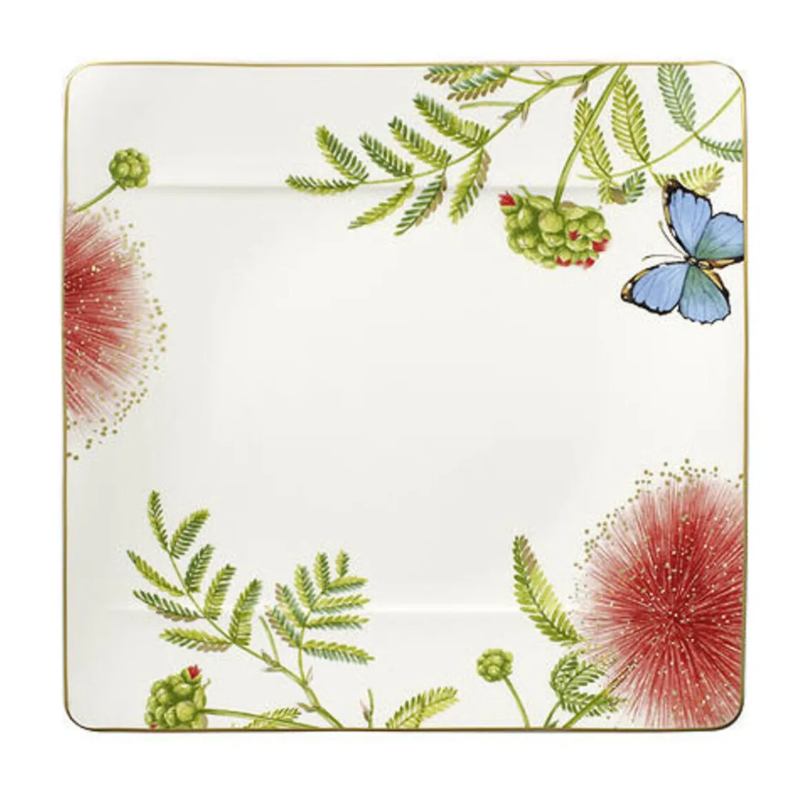 Mit dem Speiseteller Amazonia von schaffen Sie ein Tischbild, das von der Vielfalt der Natur geprägt ist. Hier treffen Sie auf tropische Blüten und einen flatternden Falter, die Ihre Delikatessen auf exotische Weise umspielen. Bringen Sie mit diesem farbenfrohen Teller den Regenwald auf Ihre Tafel.