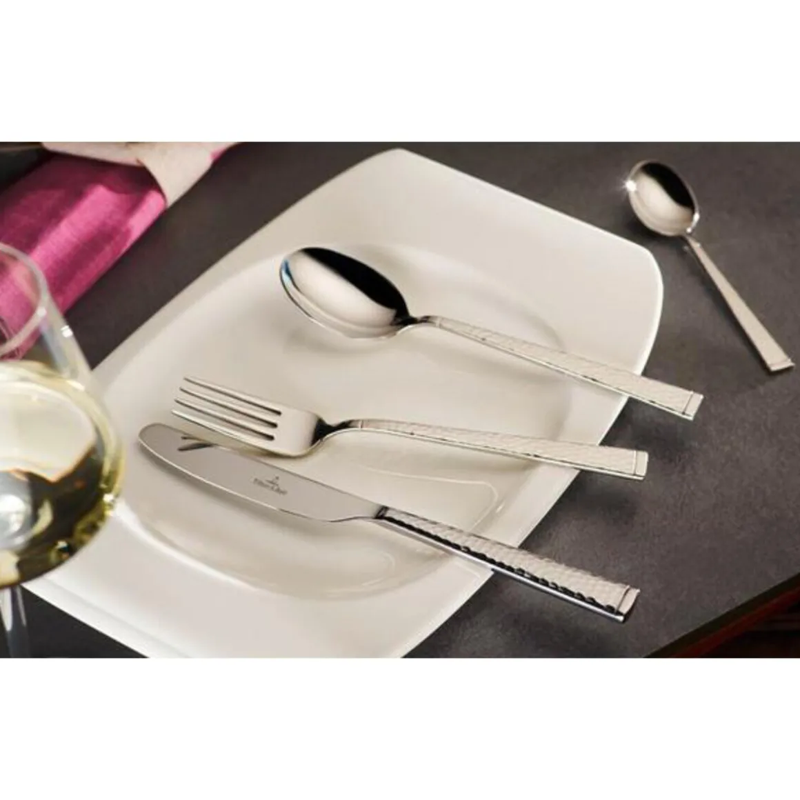 Die Besteck-Kollektion Blacksmith fällt durch Ihre attraktiven Punzierungen an den Griffen besonders ins Auge. Sie sind ein hübscher Kontrast zur elegant reduzierten Form des Tafelbestecks von .Das Besteck aus hochwertigem Edelstahl ist ausdrucksstark, hervorragend verarbeitet und für den täglichen Gebrauch ausgelegt. Das Gewicht ist besonders bei den Messern sehr gut ausgewogen, somit liegen die einzelnen Besteckteile angenehm in der Hand.Das Tafelbesteck-Set Blacksmith ist für 6 Personen ausgelegt und beinhaltet: