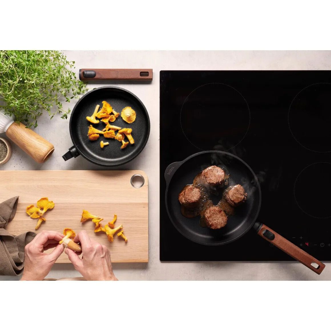 - Guss-Hochrandpfanne Eco Logic QXR mit abnehmbarem Griff aus FSC-zertifiziertem Holz